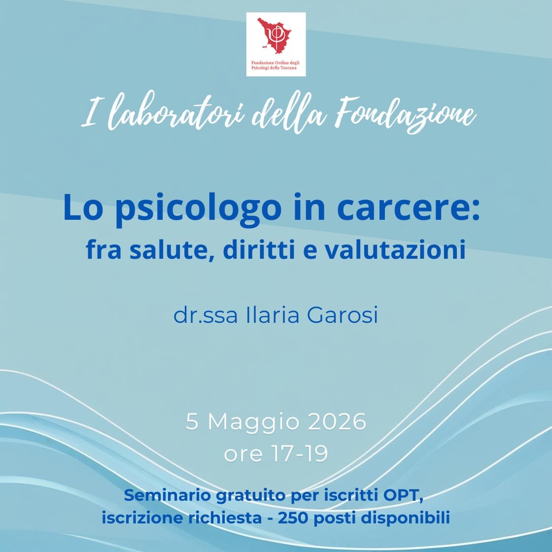Il webinar propone una riflessione sul ruolo dello psicologo nei contesti detentivi, a partire dall’intreccio tra tutela della salute mentale, garanzia dei diritti fondamentali e funzioni valutative richieste dall’autorità giudiziaria.