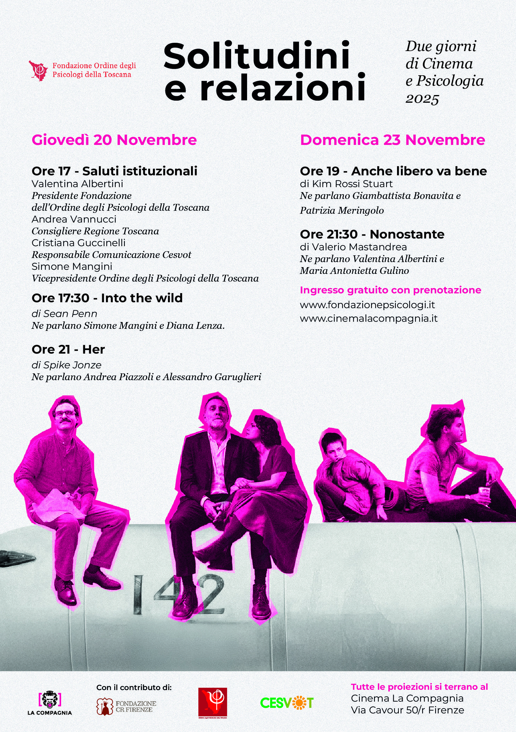 Cinema e Psicologia si incontrano a Firenze, un'iniziativa promossa dalla Fondazione Ordine degli Psicologi della Toscana insieme all'Ordine degli Psicologi della Toscana, con il contributo di Ente Cassa Risparmio di Firenze e Cesvot.